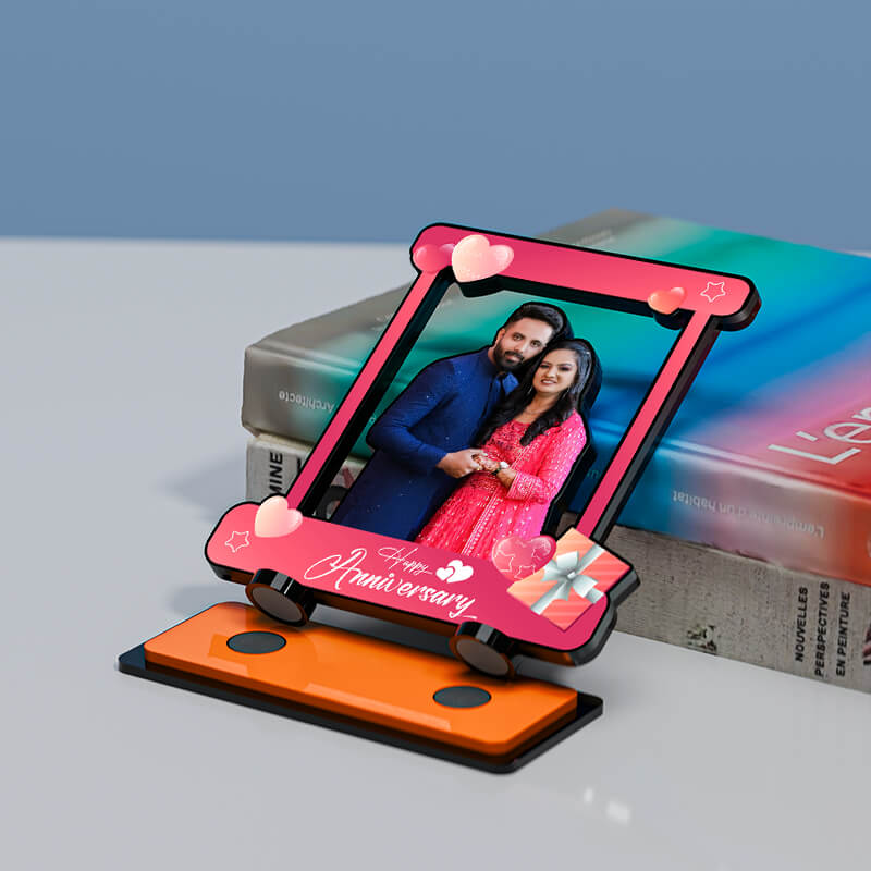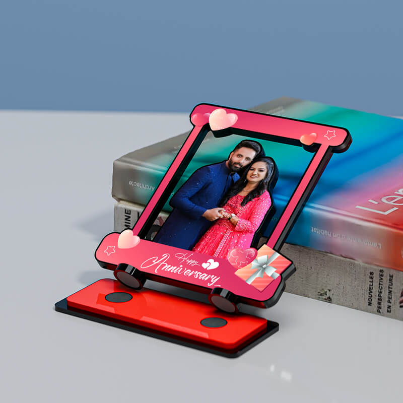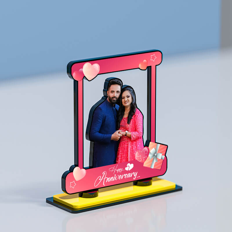 Happy Anniversary with Hearts Miniature Photo Stand Design